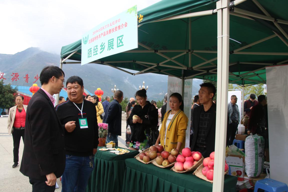 上午,李富民一行在汉源县富林镇参加了汉源县举办的2019年国家扶贫日主题活动―汉源县特色农产品消费扶贫推介会,参观了我校联系的富乡乡和晒经乡脱贫攻坚成果展,分别向晒经乡党支部书记袁桂忠和富乡乡党委委员、副乡长冯燕梅了解了联系村的状况和发展中遇到的困难,有针对性的提出了意见和建议,并表达了各级党委、政府和学校师生对他们的关心和牵挂。