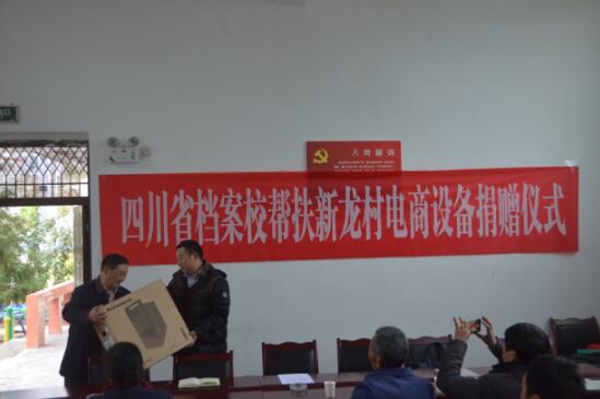 宣讲结束,童以鸿代表学校向新龙村赠送了种植、养殖业方面的技术资料;赠送了电脑、打印机等电子商务平台建设所需的设施设备,并与新龙村签订《精准扶贫贫困户农产品购买协议书》,承诺协助该村村民解决农产品 “销售难”的问题。童以鸿说“党的扶贫政策好,个人也要使劲搞”鼓励大家要大力发展种养殖业,通过扩大就业和“管好果树、种好蔬菜、养好鸡猪”改变贫困面貌。