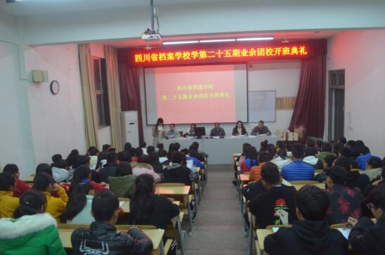 2017年12月4日晚,四川省档案学校第二十五期业余团校开班典礼在二教阶梯教室举行。学校党委委员、校团委书记、学生科科长王三刚及校团委相关老师出席。开班典礼由校团委学生团总支组织委员杨小琼主持。